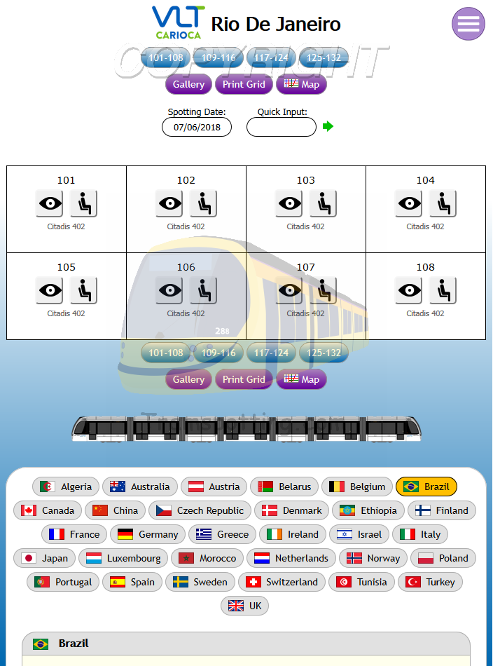 Tramspotting.com is dedicated to enthusiasts of Light Rail Vehicles (Trams). Once logged in, you can record your Spots (Cops) and Rides of the trams from most (if not all) major tramway systems in the world and access Network Maps for them.