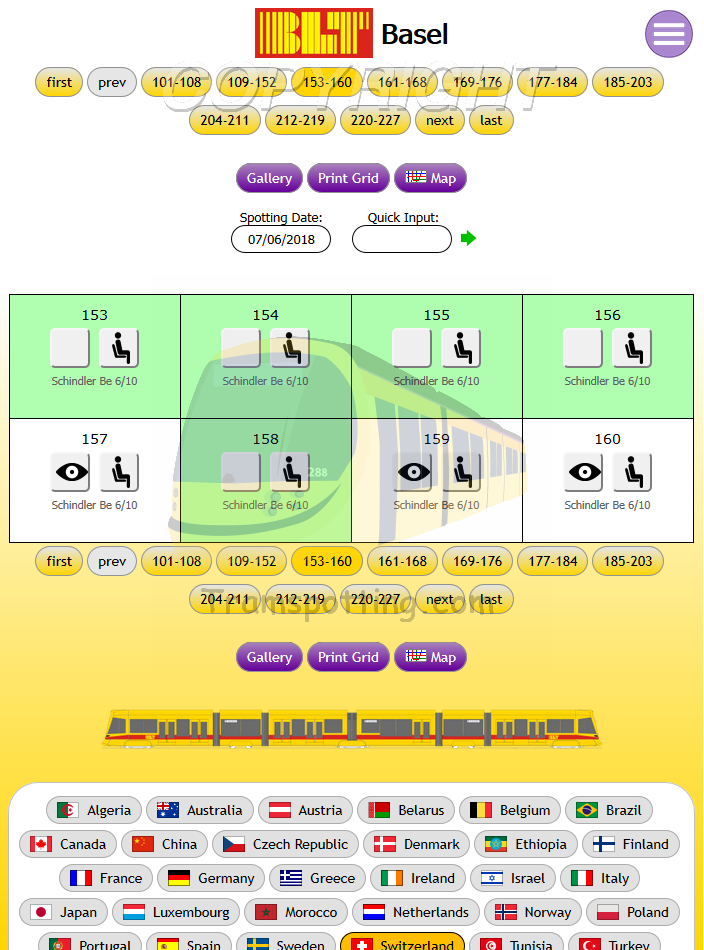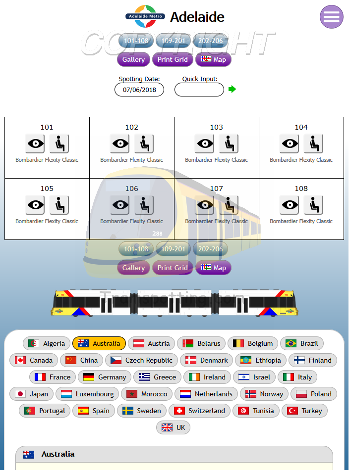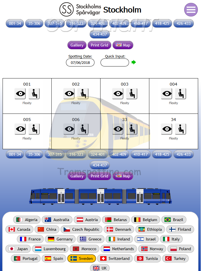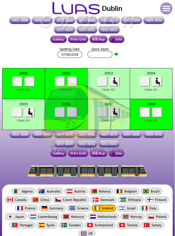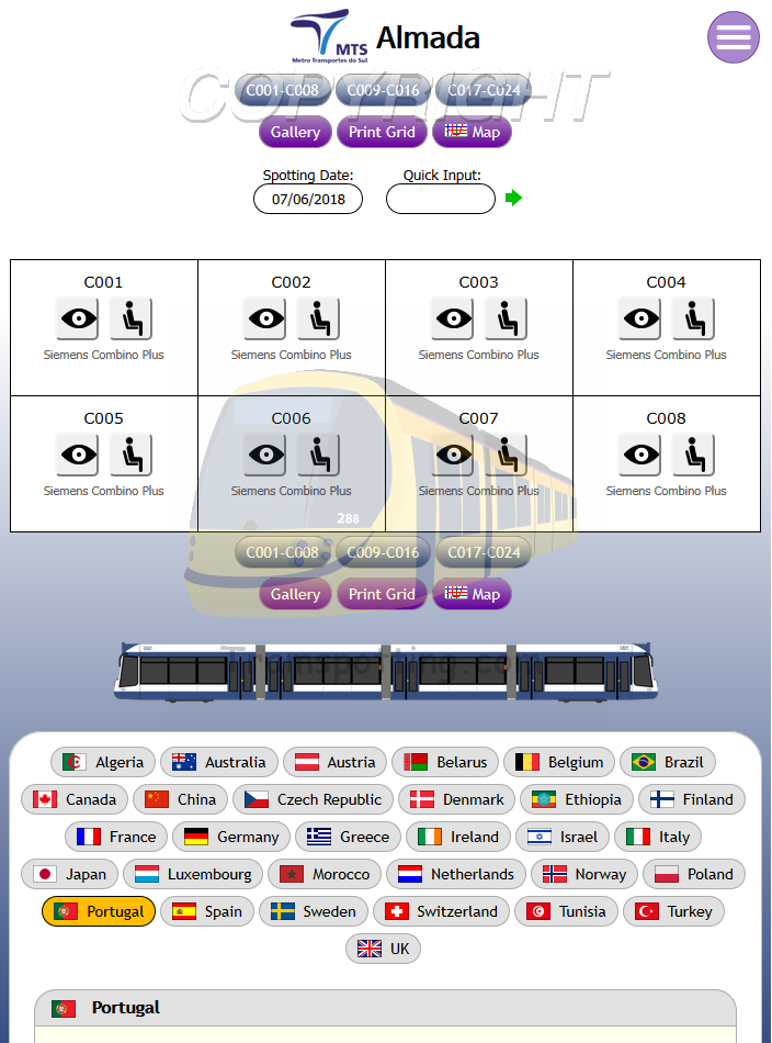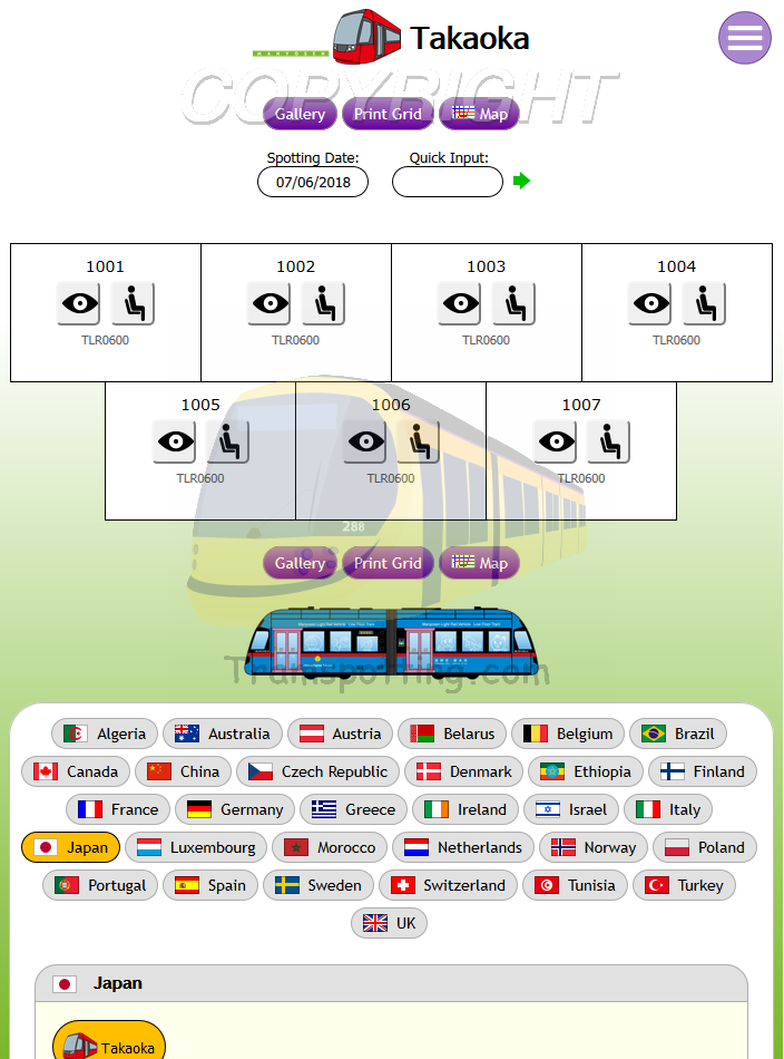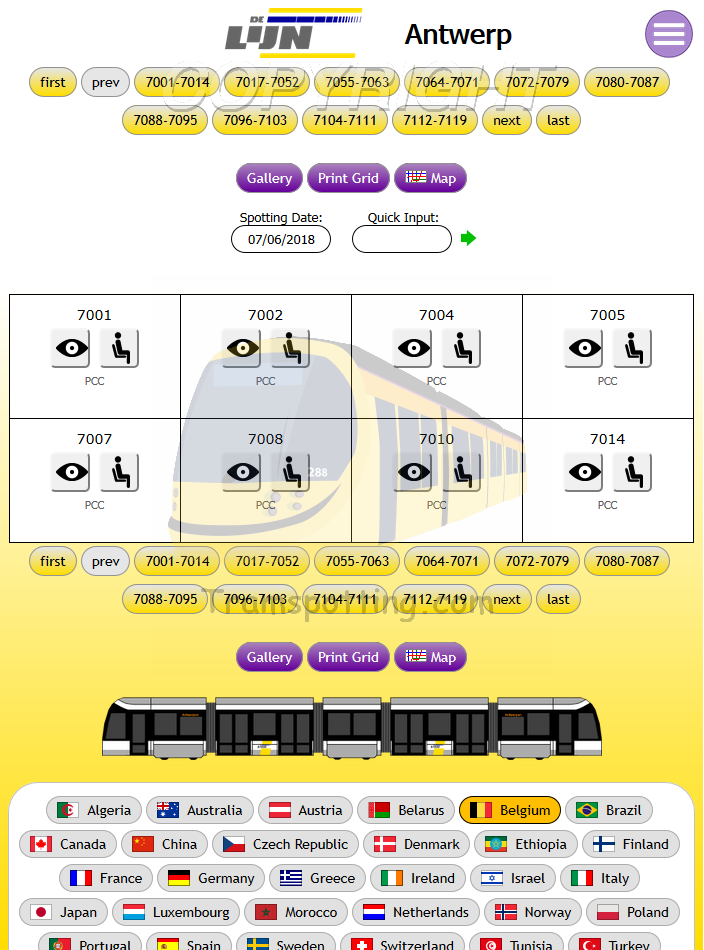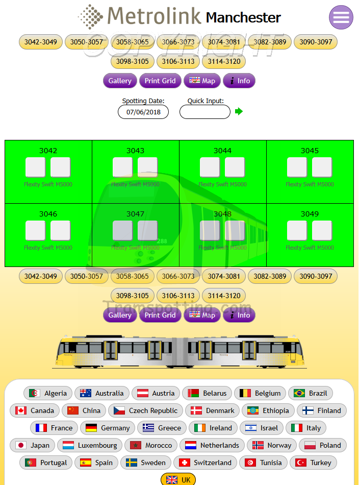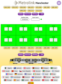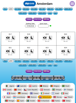 Tramspotting.com is dedicated to enthusiasts of Light Rail Vehicles (Trams). Once logged in, you can record your Spots (Cops) and Rides of the trams from most (if not all) major tramway systems in the world and access Network Maps for them.