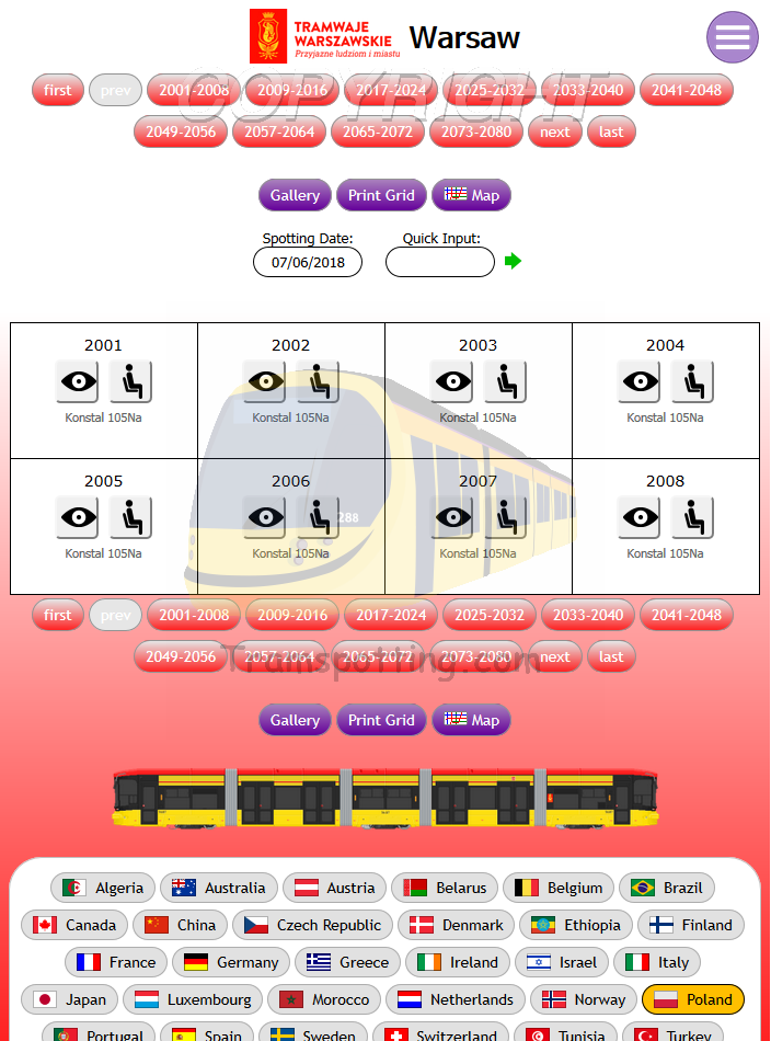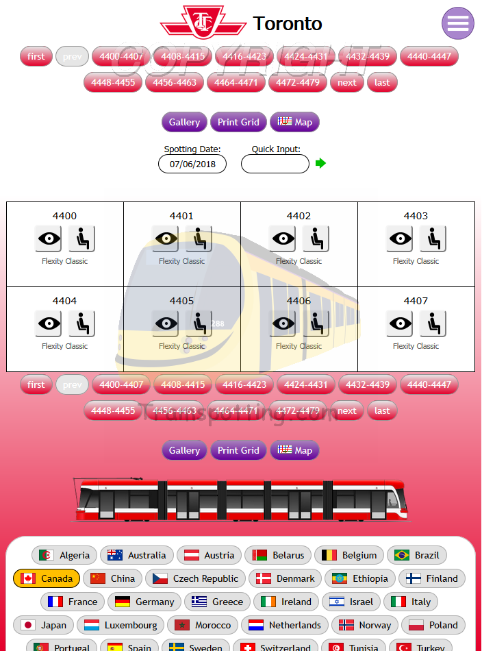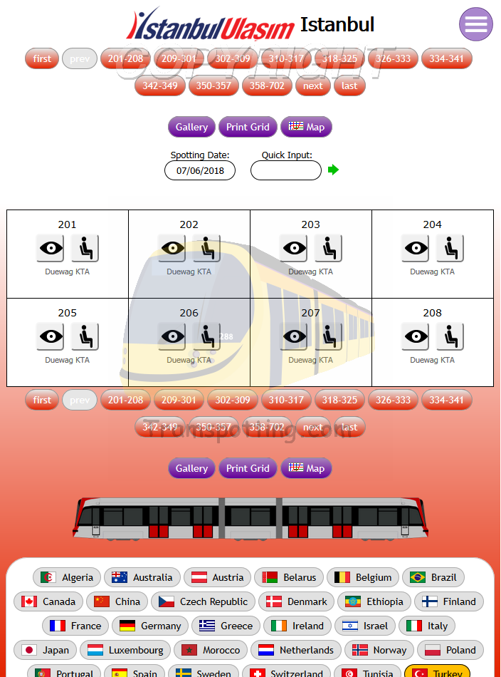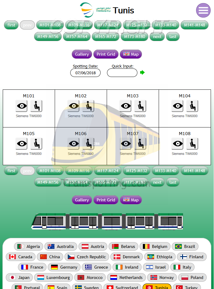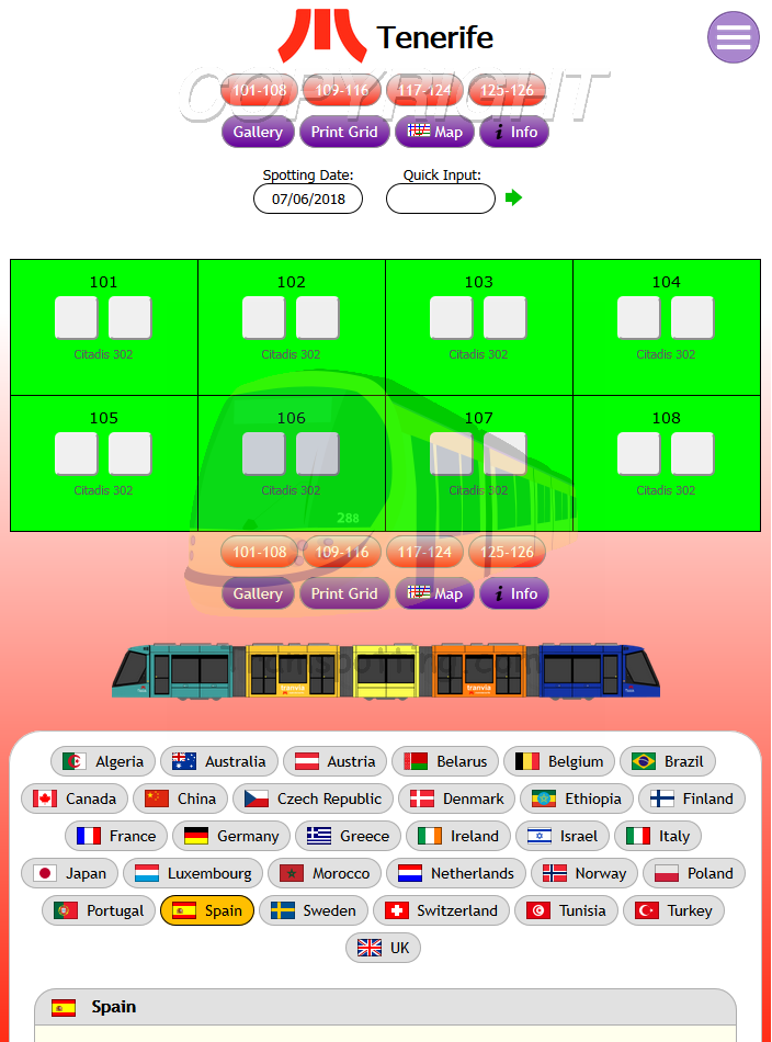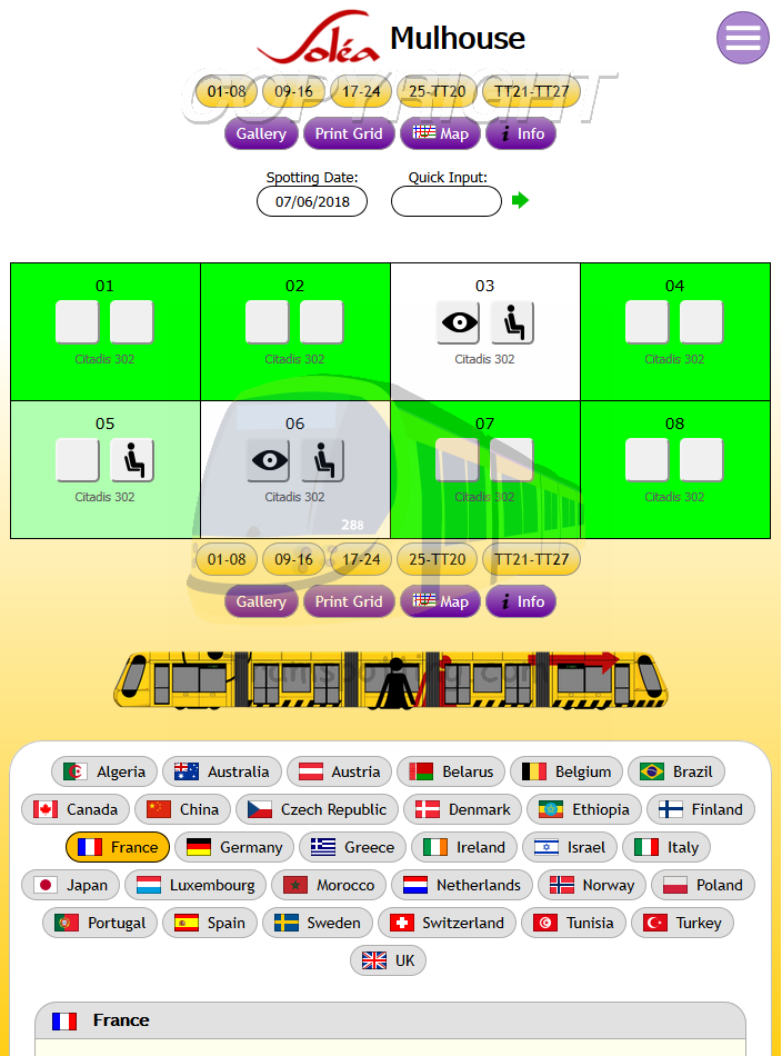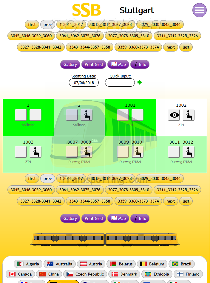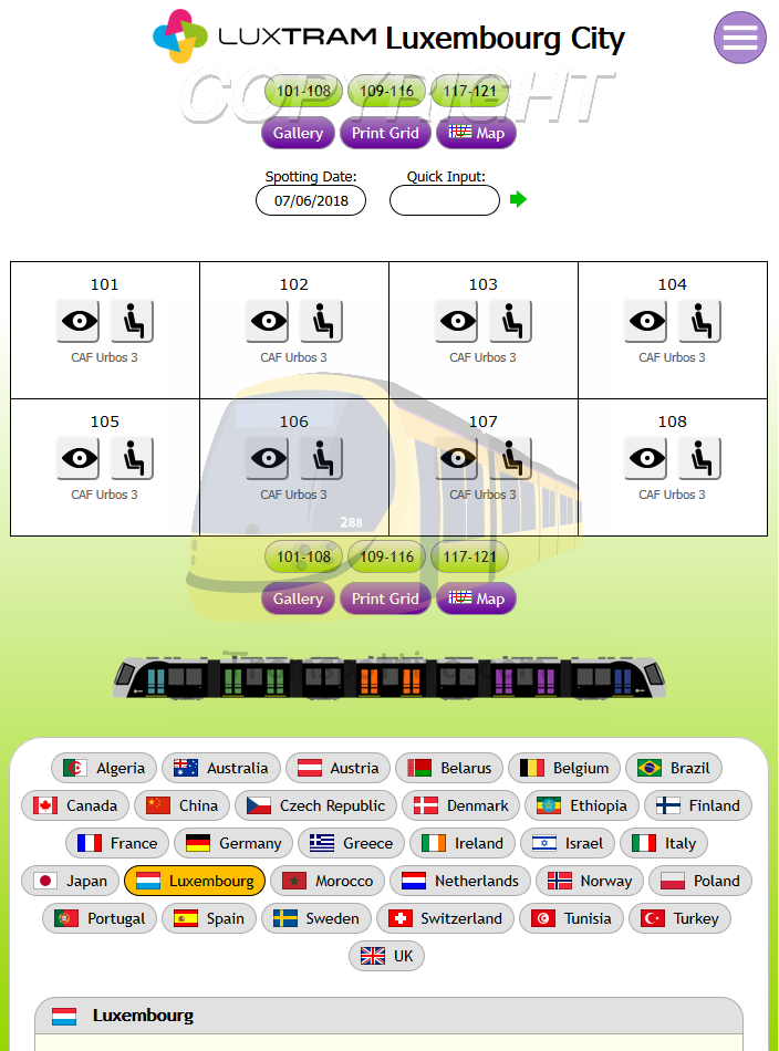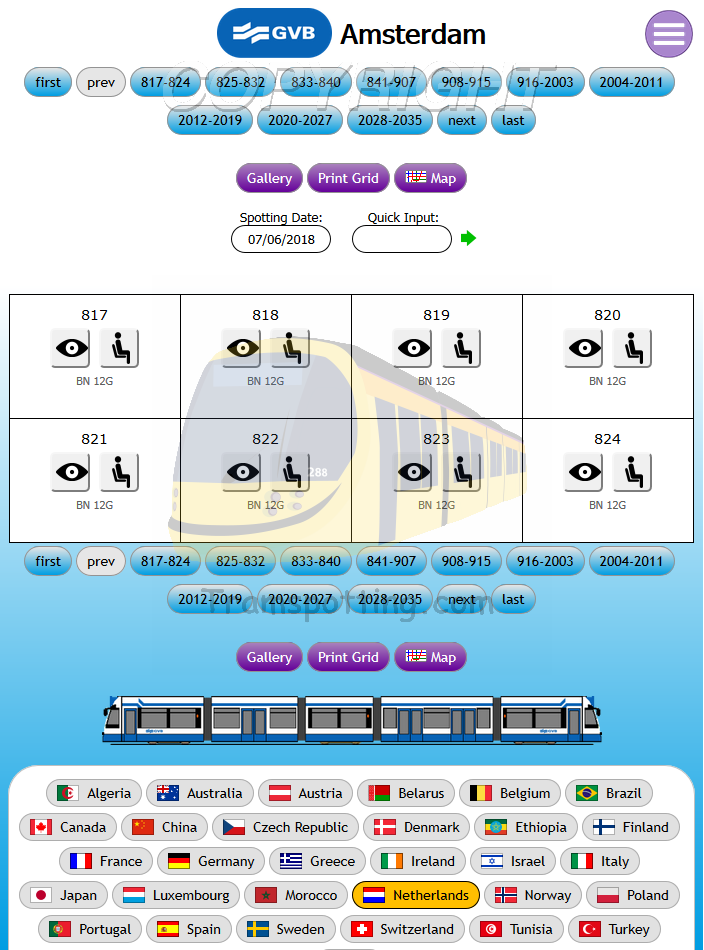Tramspotting.com is dedicated to enthusiasts of Light Rail Vehicles (Trams). Once logged in, you can record your Spots (Cops) and Rides of the trams from most (if not all) major tramway systems in the world and access Network Maps for them.
